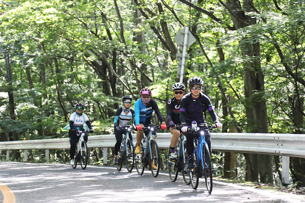 しかし、笑顔が消えない。息も切れない。周囲の景色を楽しむ余裕がある。疲れないがしっかりスポーツ感もある。何より、走力差がある人同士が同じペースで話をしながら山を上れている(※)。こんなヒルクライムは、かつて体験したことがない。