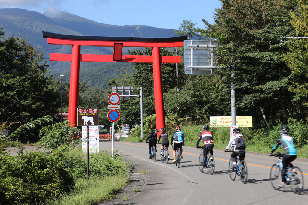 筆者もかつて1人でこの山を上った経験があるが、悪天候により途中でゲートが閉ざされ、無念の「DNF」に終わった。この日は打って変わって好天。サイクリストたちを迎え入れるような快晴のもと、麓の大鳥居をくぐってヒルクライムをスタートした。