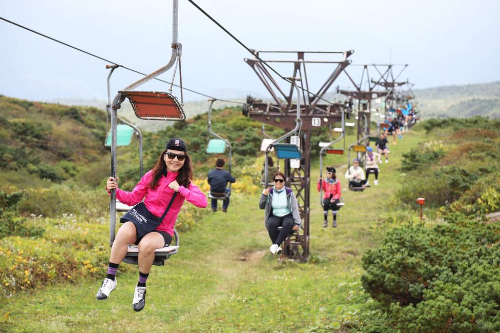 スタートから約14km、1000mほど上ってきた、Liv創始者でGIANT現会長のボニーさん。御年70歳ながら、まだまだ余裕の表情 © GIANT実際、前回筆者が1人で蔵王を上ったときに見過ごしていた景色があったことを、今回のヒルクライムで知った。高山植物であるコマクサの群生地(6月中旬~7月頃に開花)として知られる駒草平。不帰の滝や奥羽山脈を一望できる景勝地で、コースを外れて少し脇道を入ったところにある。前回のヒルクライムでは、おそらく必死にもがいていたのだろう。狭くなっていた視野では気づけるはずもない場所だ。
