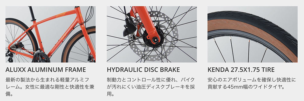 新登場のディスクブレーキバージョンは、バイクや衣服が汚れにくく快適なサイクリングが楽しめます。