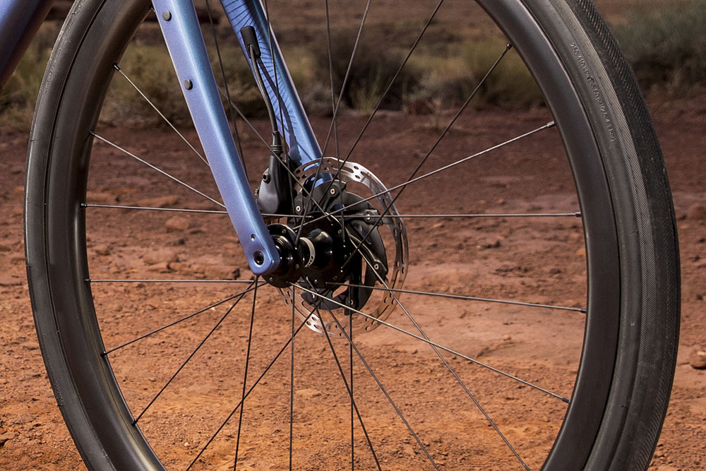 チューブレス対応のホイールシステムとタイヤの組み合わせによって、転がりも良く効率的に。快適でコントロール性も向上します。