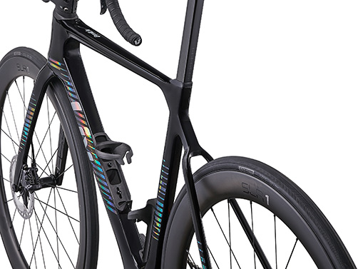 また、「ENVILIV ADVANCED PRO」には空力特性に優れた「GIANT SLR1 50 DISC」ホイールシステムを採用し、空気抵抗を前世代より9.21w低減させました。これは前世代が時速40kmで1時間走行した場合と比較して、同じ出力で40秒の短縮に相当します。