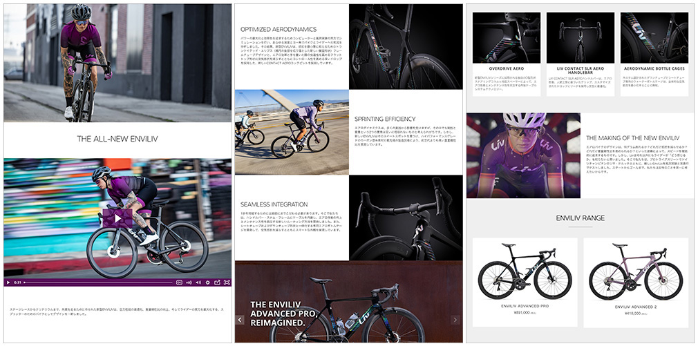 ロード、クリテリウム、トライアスロン等のスプリントレース向けに究極のスピードと効率性を目指して、アスリートの意見を取り入れながら再設計された新型ENVILIVは、最適な空力性能と重量剛性比を実現しています。Liv Racing TeqFindとTeam Jayco AlUla女子チームは、2023年のワールドツアーで新型ENVILIVを使用します。また、Liv Racingのトライアスリートで、テストライダーとして開発にも携わったリサ・テルッチ(Lisa Tertsch)も新型ENVILIVを使用予定です。