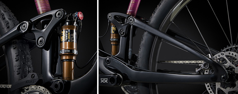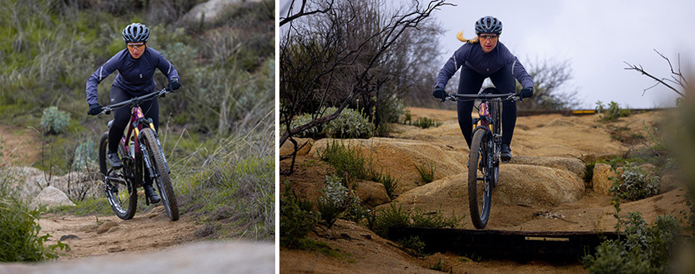 新型PIQUE ADVANCEDのサスペンションシステムは、前世代まで採用されていた「Maestro」サスペンションテクノロジーから、より効率的で軽量な「FlexPoint Pro」サスペンションテクノロジーにアップデートされています。この独自の「FlexPoint Pro」は、リンケージ駆動のシングルピボットデザインを採用しており、効果的に衝撃を分散すると同時にコントロール性とトラクションの向上をもたらします。その結果、ライダーは疲労の軽減と安定したパフォーマンスを体感することで、厳しいクライミングやテクニカルなドロップオフも、自信を持って駆け抜けることができます。「FlexPoint Pro」サスペンションは115mmのリアホイールトラベルを提供し、あらゆる地形でパワーとトラクションを最大限に引き出します。また、67°のスラックなヘッドチューブアングルや120mmトラベルのフロントサスペンションとの組み合わせにより、テクニカルな下りでも優れたハンドリングを発揮します。