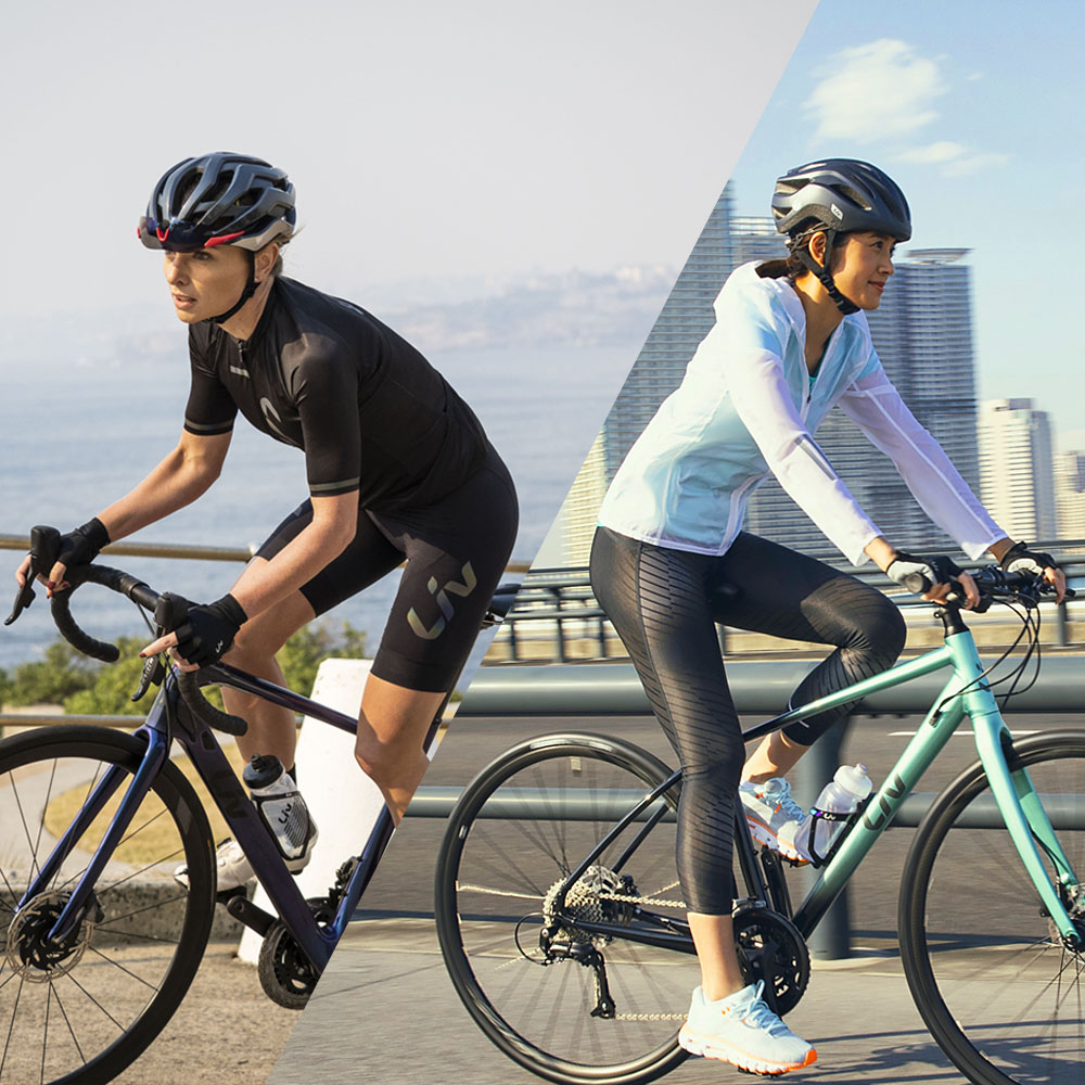 サイクリングショーツのシャモア(パッド)には様々な種類があり、サドルと同じようにライディングスタイルや⾝体に合うサイクリングショーツを⾒つけるのに、少しの時間と知識が必要な場合があります。 バイクショップのショーツ売り場で途⽅にくれてしまう。そんなことが起きないよう、選ぶ際の参考に、ぜひお読みください。シャモアの厚みについては好みで選んでオーケーですが、縫い⽬の位置や形状、吸湿発散性などは、⾛りに影響しますので注意しましょう。 購⼊時やボトムスを選ぶ際のポイント ● 解剖学的にフィットするようにつくられている、⼥性向けのサイクリングショーツを選びましょう。⼥性と男性では、⾻盤の形状に⼤きな違いがあるためです。 ● 「15キロ以上⾛るならサイクリングショーツを着⽤」と覚えておきましょう。デコボコした道を⾛る場合は、15キロより短いライドでも着⽤するか検討してください。 ● 短い距離の通勤ライドなら、シャモアが薄いショーツを選びましょう。普段着の下に履くタイプのインナーショーツ(LIV VERA INNER CYCLING SHORTSもおすすめ)なら完璧です。レース⽤のビブショーツでは⼤げさすぎますよね。 ● サイクリングショーツを履くときには、クッション⼊りのサドルカバーを使わないように注意。ショーツは、あなたとサドルの間にある唯⼀のレイヤーだと考えてください。そこへ何かが加わると、摩擦によって問題が悪化してしまいます。 ● 同じ理由から、サイクリングショーツの下にアンダーウェアは履きません。 ● それでも擦れて痛みを感じる場合は、シャモアクリームを試してみてください。 LIV CHAMOIS TECHNOLOGY すべての⼥性に快適なサイクリング体験を。Livのサイクリングショーツは⼥性の⾻格に合わせた専⽤設計のシャモアパッドを採⽤しています。部位ごとに最適な厚みをもたせたパッドは、サドルに座ったときの加重を効果的に分散し、サイクリング中のおしりの負担を軽減。さらにパッド表⾯は⾼い通気性と抗菌性を備え、肌にやさしく⼀⽇中ドライで快適な着⼼地をキープします。 ProComfor™ Chamios ⻑距離のライドで最⾼の快適性を提供するシャモアです。イタリアで製造されているものと、スイス製のものとがあります。 RACE DAY / SUPREME / MONTAGE / TROPIC に採⽤:● 3種類のフォームを組み合わせたトリプルデンシティー構造● 抗菌作⽤のあるカルボニウム素材● 擦れを防ぐオールウェイストレッチ素材● イタリア製(EIT) SIGNATURE / STEALTH に採⽤:● ライドポジションにフィットするストレッチ素材● 機械による⽴体成型● 快適性と通気性のためのオープンセルフォーム● 熱を分散し肌を保護● 抗菌機能のあるファブリック● スイス製(CUORE) SportComfor™ Chamios 軽量性とソフトな感触によって⾃由な動きを妨げないシャモアです。中距離のライドのために設計されており、イタリアで製造されています。 FISSO / FLARA シリーズに採⽤:● 優れた軽量性● デリケートゾーンに、より厚みのあるフォームを配置することで痛みを防⽌ CoreComfor™ Chamios 動きやすさと保護性能、快適性を提供するために開発されたシャモア。中距離から短距離のライドと、オフロードライドのためにつくられました。 MOSSA / BELIV に採⽤:● TransTextura™ 吸汗速乾素材● 部位ごとの厚みを最適化したフォーム ACTIVO に採⽤:● オフロード⾛⾏のためのデザイン● TransTextura™ 吸汗速乾素材