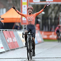 マリアンヌ・フォスがベルギーのエッセンで開催されたエシアス・クロスに出場。シクロクロスシーズン最初のレースで、圧巻の独走勝利を納めました。 怪我によって今年1月に短いシクロクロスシーズンを終えたマリアンヌ・フォスが、今週火曜、ベルギーのエッセンでシクロクロスレースに復帰しました。ぬかるんだ路面コンディションの中、フォスは辛抱強く最終周回で集団からアタックをするタイミングを待っていました。そして、独走でフィニッシュラインを超え、勝利を収めました。 「厳しい戦いだったけど、うまくいきました」と、フォスはレース後のインタビューで語りました。「予想していたよりも、周回ごとに集団の前の方に動くことができました。」 レースでは、フォスと、19位でフィニッシュしたチームメイトのパウリナ・ルイジャッカースが共に、CADEXホイールを装備した新型BRAVA ADVANCED PROを使用しました。昨冬に数名の選手がBRAVA ADVANCED PROのプロトタイプに乗っていましたが、7月の一般発売後、今回のフォスの勝利がこのバイクにとって初勝利となります。