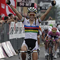 7/26(日)パリ・シャンゼリゼ通りで開催された「ラ・クルス byツール・ド・フランス」で ラボバンク-リブのアンナ・ファンデルブレヘン(オランダ)が優勝しました。 また、リブープランツアのエイミー・ピータースが3位に入りました。 「ラ・クルス byツール・ド・フランス」は「ツール・ド・フランス」最終ステージの 同日に開催される、1周6kmのコースを周回する全長89kmの女子プロレースで、 ファンデルブレヘンはEVNIE ADVANCED PROと共に出場しました。 雨により難易度を増したコースに選手たちは危険にさらされました。 チームメイトのポーリン・フェランプレヴォ(フランス)もその一人で、 雨で滑りやすくなった路面で転倒してしまいます。 そんな厳しい状況にも関わらず、ファンデルブレヘンはリードを保ち、 ライバル達を寄せ付けない見事な走りを見せました。 今シーズン、「フレッシュ・ワロンヌ」、「オムロープ・ヘット・ニウスブラット」、 「ジロ・ローザ」と立て続けに勝利しているファンデルブレヘンはレース後、 Cyclingnews.comの取材に以下のようにコメントしました。 「優勝できたなんて信じられません!チームのプランは、フランス出身の フェランプレヴォをエースにスプリント勝負をする予定で、 他のチームに足を使わせるために私が逃げました。 タフなコンディションが味方して最終的にゴールまで逃げ切ることができました。 今日の結果は、いままでの勝利の中で人生最大の勝利です!」