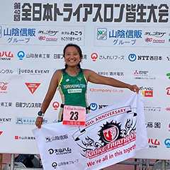 7/17(日)鳥取県米子市で開催された第40回 全日本トライアスロン皆生大会にLivアンバサダーの蔵本 葵さんがLANGMA ADVANCED PROと共に出場しました。荒天のため中止となったスイムの代わりにランが追加され、第1ラン6.9km・バイク115km・第2ラン32kmのデュアスロンとして争ったレースで、蔵元さんは6位でフィニッシュしました。以下、蔵本さんよりいただいたコメントをお届けします。 第40回全日本トライアスロン皆生大会は総合6位でフィニッシュしました。今回も沢山の応援をありがとうございました。 ロングに挑戦したいと思ってから挑んだ、初めてのレースでした。出場するにあたり、レース中の補給の仕方やペース配分などを、監督や先輩、セッション会員さんに聞いてロングのレースをイメージして練習してきました。 レース当日は波のうねりの影響でデュアスロンに変更になりました。スイムが得意な私としては少し残念でしたが、自然を相手にしている競技なので、そういう時もあると考え気持ちを切り替えました。 第1ラン6.9kmは一斉スタートだったのでハイペースでしたが、その中でも落ち着いて走りました。バイクがスタートしてすぐの平地では前に人が点々としていたので、目で追うように走っていたら自然とペースが上がっていきました。暑さもあって前半でだいぶ体力を消耗したと思います。中盤の登りの時にはもう脚に力が入らなくなり、一気にペースダウンしてしまいました。 エイドステーションで何度も水をかぶり、回復を試みましたが、一度消耗した脚は後半になって戻ることはありませんでした。 この時、あまりにも苦しくてこれから32kmのランがあることを考えるのは辞めようと思いました。ランがスタートして5kmまでは計画通りのペースで走れていましたが、走り初めから感じていた右の足底とふくらはぎの痛みが強くなり、少しずつペースダウン。暑い中でのレースなので無理せずキープできるように走りました。大会全体のお祭りのような雰囲気と、スタッフ、ボランティアの方たちの熱意が、止めたくなりそうなときに何度も気持ちを奮い立たせてくれました。 折り返してから残り12kmのランは脚が棒になったようで、ラスト5kmは普段のジョグのペースで走るのがやっとでした。競技場が見えた時にはやっと終わるという安堵感に包まれ、競技場に入った時には少し元気に走ることができました。フィニッシュテープを切る時はやっとこの辛さから解放されるという気持ちと、こんなはずではなかったのにという悔しい気持ちの両方がありました。 4月に入ってから初めて取り組む仕事が増え、仕事のペースが掴めなかったため限られた時間で練習を行うことになりました。時間を作って練習をしていましたが、単純に今回のレースで勝つには練習量が足りなかったな。と痛感しました。練習以上の結果はでないと思う反面、だからこそ挑戦する意味があると感じました。 また、トライアスロンを始めた時から夢のひとつに「父と一緒にレースに出てフィニッシュする」という目標があったのですが、フィニッシュ40分後に達成することができました。私としてはもっと差をつけておきたかったのですが(笑) 今回はデュアスロンになってしまったので、次はトライアスロンのロング完走を目指して、練習を積んでリベンジしたいと思います。引き続き、応援をよろしくお願いいたします。