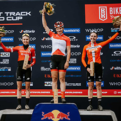 スイス・レンツァーハイデで開催されたUCI MTBワールドカップ第2戦 U23XCCで、Liv Factory Racingのロニャ・ブロヒリンガー(Ronja Blochlinger)が見事なフィニッシュで優勝し、シリーズ首位とリーダージャージをキープしました。 圧倒的な強さを見せたブロヒリンガーは、先頭に立った後レースを完全に支配。11秒のリードを築き、笑顔でゴールラインを越えました。 レースの中盤でソフィー・ペデルセン(Sofie Pedersen)のすぐ後ろを追走していたブロヒリンガーは、コーナーで少しスリップしたペデルセンをすかさず追い抜き、引き離すことに成功。最終周回では誰にも追いつかれることなくリードを保ちました。「ゴールまでまだ4周ある時点で攻撃に出るつもりはなかったのだけど、ジニア(Ginia Caluori)が私の後ろについているのを感じ、前方でソフィーが少しスリップしたのを見て、先に出るチャンスだと思いました。そして、それが上手くいきました!最後の周回を1人で走るのは気持ち良かったです。このコースとレースを楽しめたし、結果にとても満足しています」と、ブロヒリンガーはレース後に語りました。 先月、ノヴェ・メストで新たに追加されたU23 XCCカテゴリーの初優勝選手として、歴史に名を遺したブロヒリンガー。今シーズンのポイントリーダーを目指し、引き続きリーダージャージを着用してシリーズ戦に挑みます。 U23のレースはこの後もレンツァーハイデで開催され、日曜日にはXCOが行われます。レースの様子を、無料のライブストリームで視聴することができます。詳細はこちらのリンクをご覧ください。 Photos: Robin Nevrala