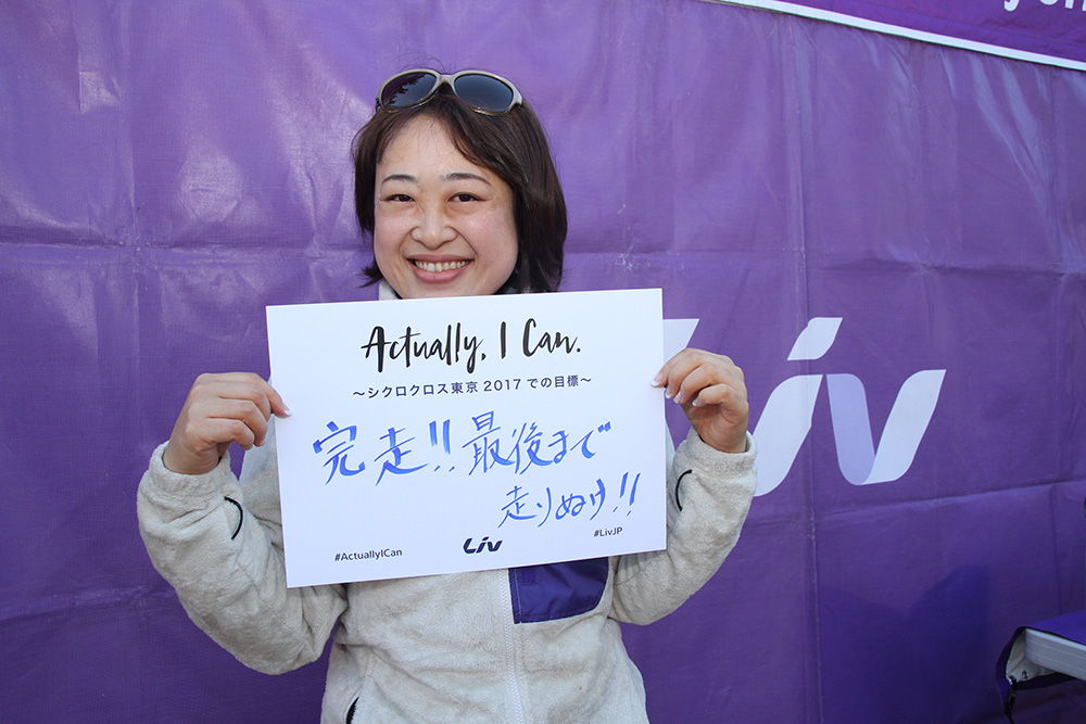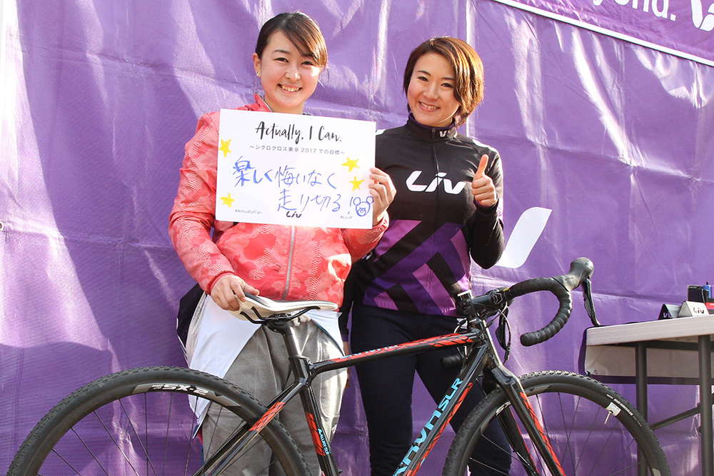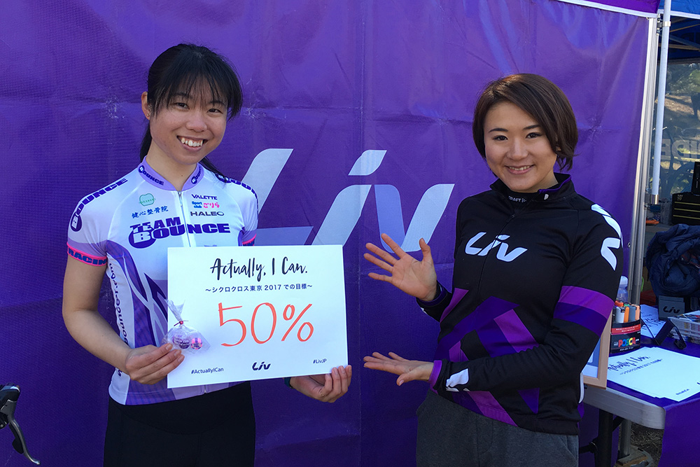 Livが同大会に参加する女性ライダーを対象に行った、レースに向けた目標を宣言いただく「Liv Actually I Can」キャペーン。参加いただいた10名の方には、Livから特製ロゴ入りキャンディーと、Livアンバサダーであるシクロクロスライダー武田和佳選手のサイン入りボトルをプレゼント。皆さまがレースで目標達成できていることをスタッフ一同お祈りしました。