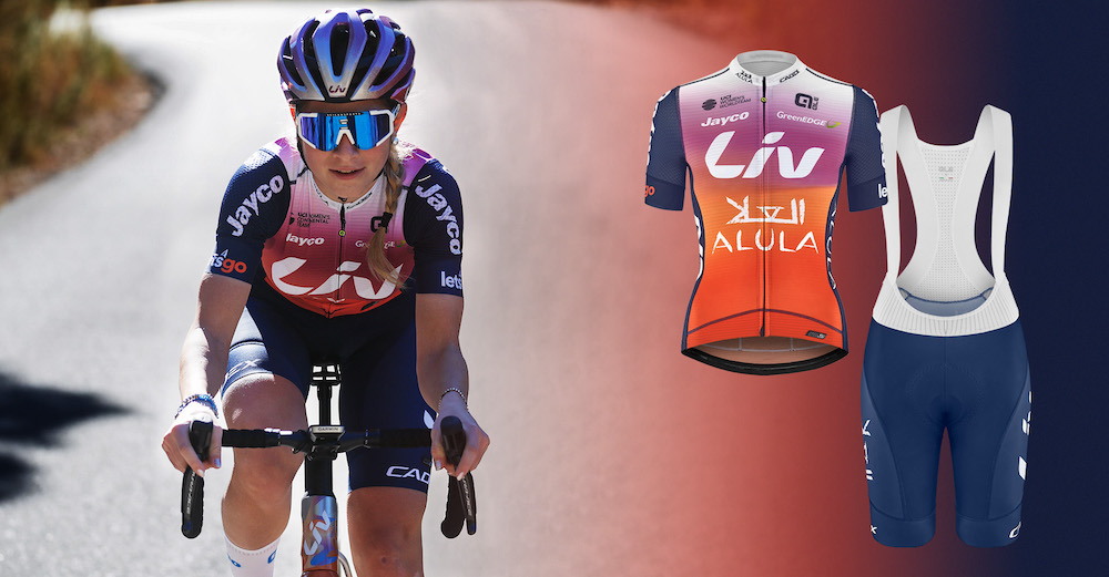 「「リブ ・アルウラー・ジェイコ」の2024チームキットレプリカ。最高レベルのエアロ性能と優れた快適性を併せ持つAle社製ハイパフォーマンスジャージ&ビブショーツ