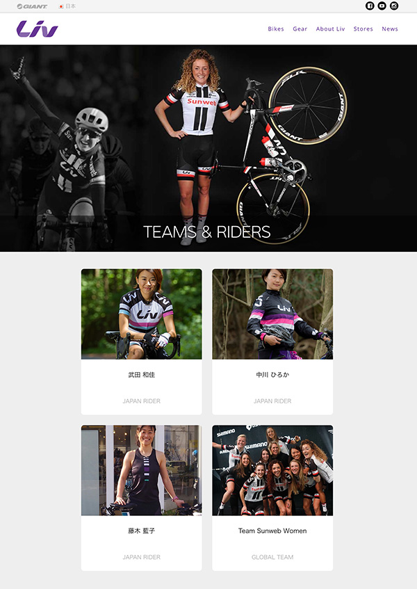 2017シーズン、Livに乗り活動する「Liv アスリートアンバサダー」を「TEAMS & RIDERS」ページに掲載いたしました。