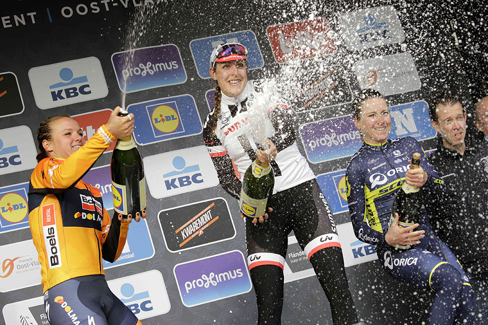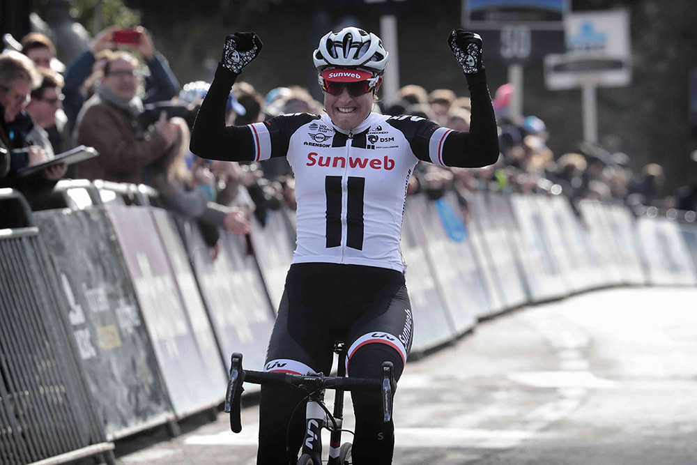 チーム サンウェブ・ウィメンのルシンダ・ブランド(オランダ)が、2/25(土)にベルギーのヘントで行われたワンデーレース「オンループ・ヘットニュースブラッド」で2位に15秒の差をつけて独走で優勝しました。