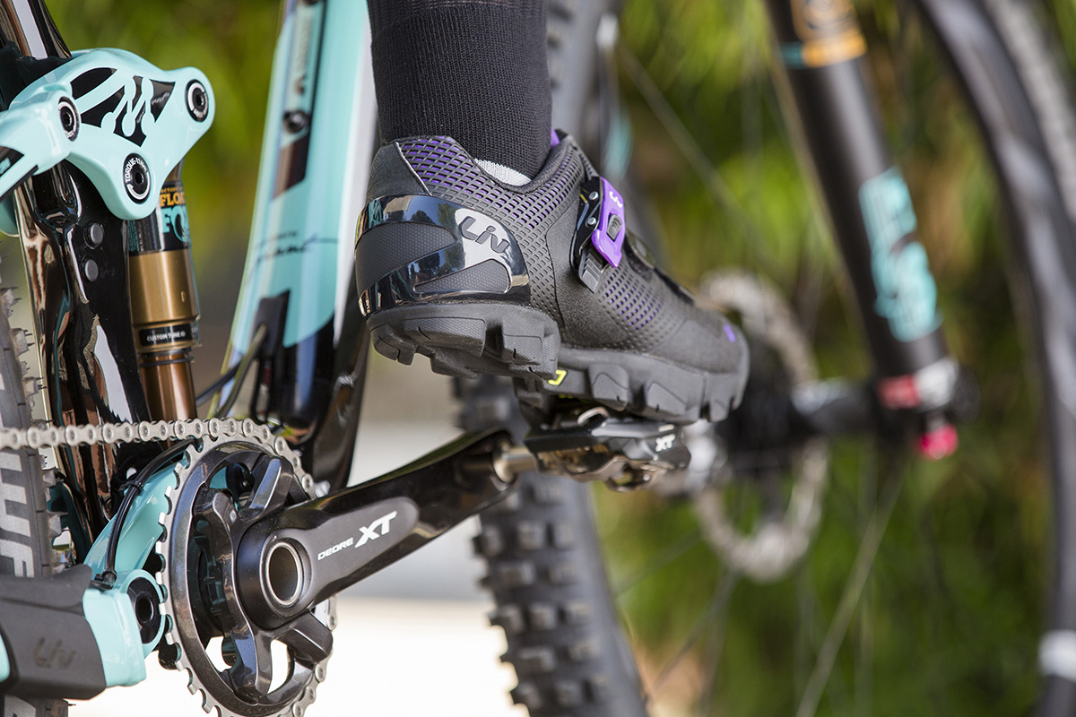 ExoBeamやExoWrapなどのテクノロジーを搭載した女性専用オフロードシューズ。XCレースに対応するペダリング剛性に加え、トレイルライドに安心なプロテクション機能も兼備
