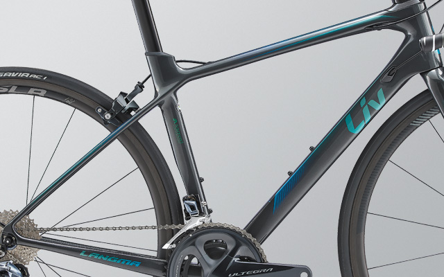 最先端工法によるカーボンフレームは、女性の美しい力に則して妥協なく造形され、流麗なフォルムを描く。