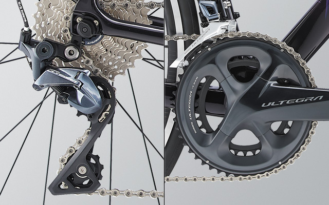 上位モデルの最先端テクノロジーを受け継いたシマノ アルテグラを標準採用。