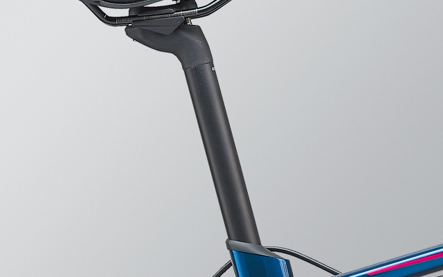 路面からの衝撃を逃がし快適なペダリングをサポートするD型断面形状アルミシートピラー。