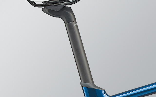 路面からの衝撃を逃がし快適なペダリングをサポートするD型断面形状カーボンピラー。
