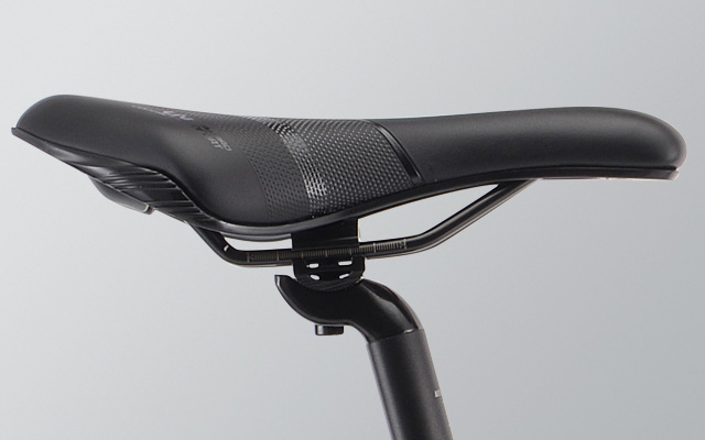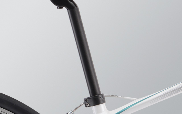 路面からの衝撃を逃がし快適なペダリングをサポートするD型断面形状アルミシートピラー。