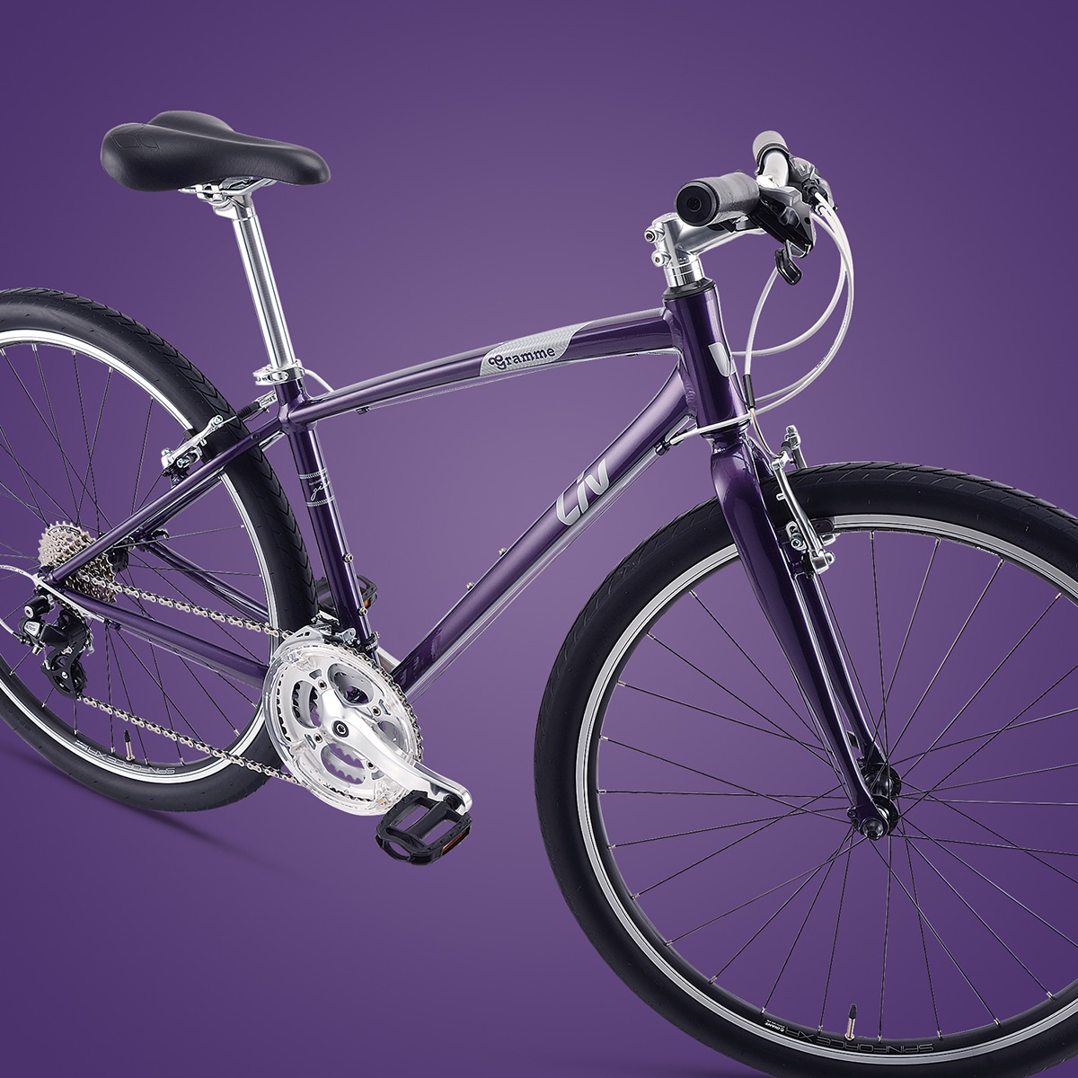 ワイドタイヤの安定感と走りの軽さを両立する人気のクロスバイク「グラビエ」を女性専用にリファインした「グラム」。