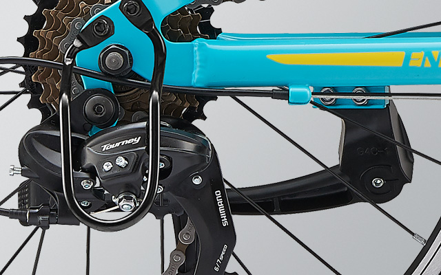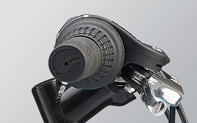 手指の小さいジュニアでも問題無く、直感的にギアシフトができるシマノ製グリップ式シフター。
