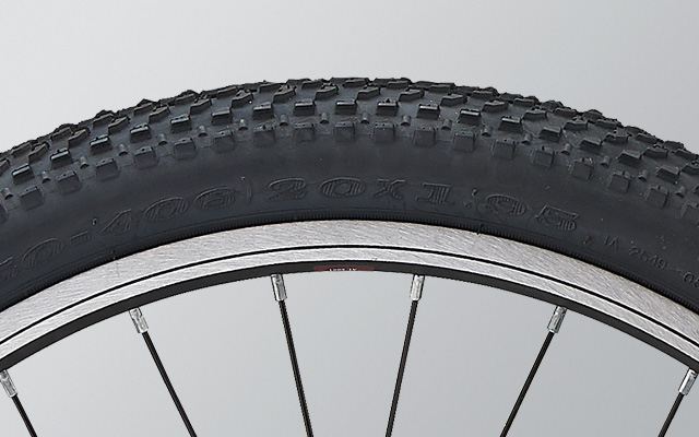 軽い走りとグリップを両立するオリジナルデザインのセミブロックタイヤを採用。