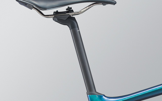 路面からの衝撃を逃がし快適なペダリングをサポートするD型断面形状カーボンシートピラー。
