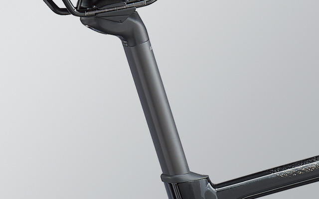 路面からの衝撃を逃がし快適なペダリングをサポートするD型断面形状カーボンシートピラー。