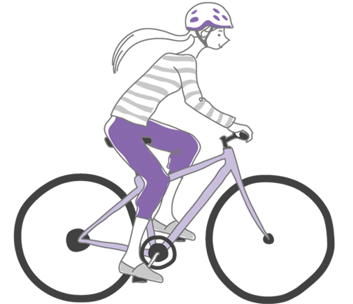 サドルの高さサドル高は、腰骨(腸骨稜のトップ)の位置を目安にします。サドルにまたがり一番下にしたペダルに足をのせ、膝が軽く曲がり、逆の脚のつま先が地面に着く程度が適切なサドル高となります。