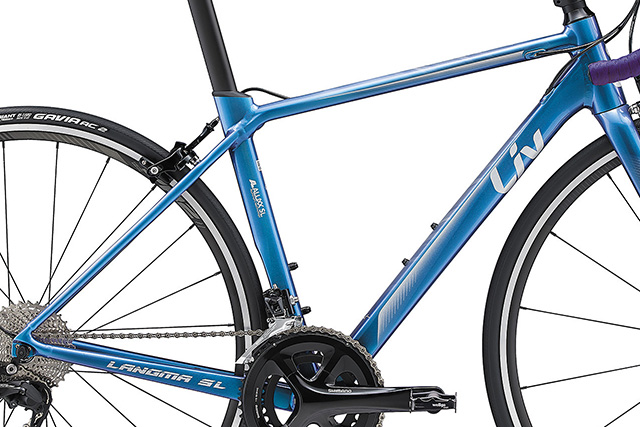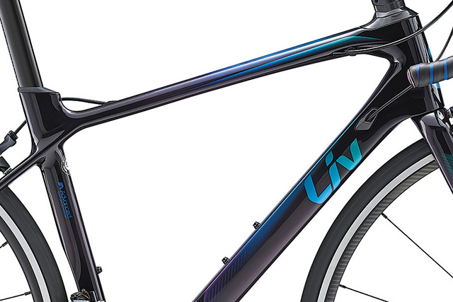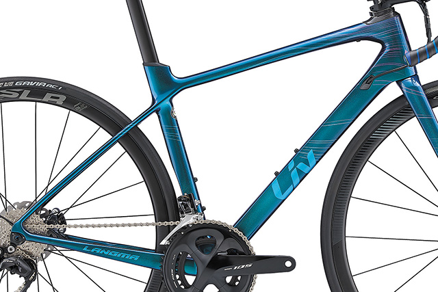 登坂では車体重量の軽さが大きなアドバンテージとなります。ランマは、女性が効率よくヒルクライムできる軽さを目標に開発され、最上位モデルの「LANGMA ADVANCED SL」で、フレームとフォークで1,155gという軽さを実現。山岳レースで実績のある「GIANT TCR ADVANCED SL」に対しても、サイズごとに約2.5%から6.5%もの軽量化に成功しています。