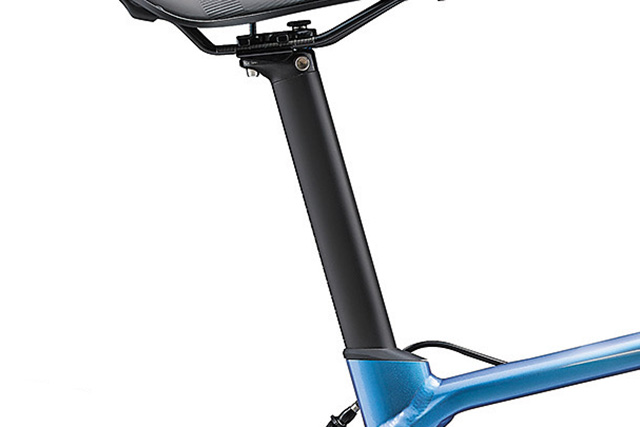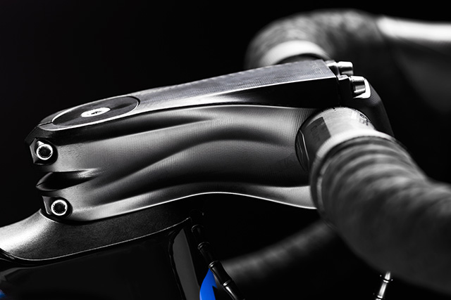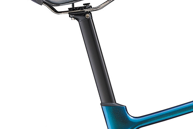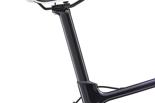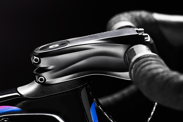 ランマの設計思想はフレーム形状にも表れています。ダウンチューブ前部にはエアロ性能を追求した半楕円形状を、ボトムブラケットにつながる後部にはねじれ剛性に優れる箱型形状を採用。さらに、上位モデルに採用される新開発の「FLUXステム」は空気抵抗を軽減するエアロデザイン。ランマは、軽さのみならずエアロ性能と剛性も同時に追求し、総合的に走行性能を高めています。