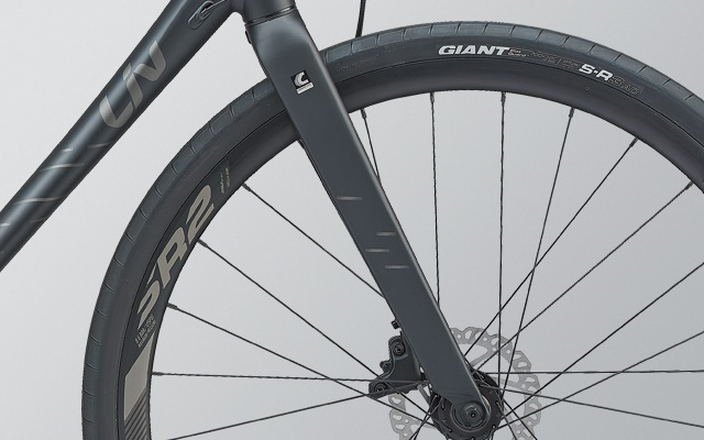 路面からの不快な衝撃を吸収して走行安定性を高める軽量なカーボンフォークを採用。