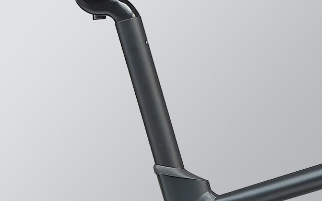 路面からの衝撃を逃がし快適なペダリングをサポートするD型断面形状アルミシートピラー。