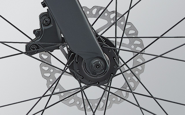 引きの軽さと安定性、高い制動力で快適なライドを提供する油圧ディスクブレーキを採用。