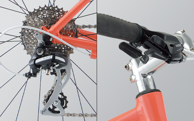 変速機や後輪ギアなどの駆動系と操作性を左右するブレーキレバーに信頼のシマノ製品を採用。