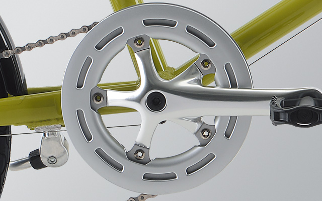 ズボン裾の巻き込みやチェーン外れを防止する、内外両面式チェーンガードを装備。