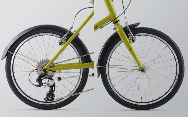 キックスタンドにフェンダーも標準装備しているので、カジュアルなサイクリングに最適です。