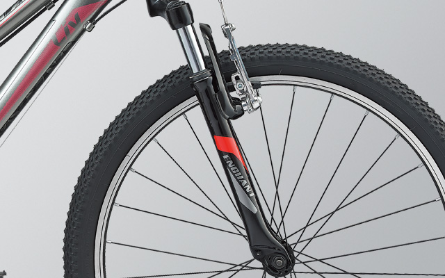 サイズの小さなジュニア車にちょうど良い、50mmストロークのフロントサスペンションフォーク。