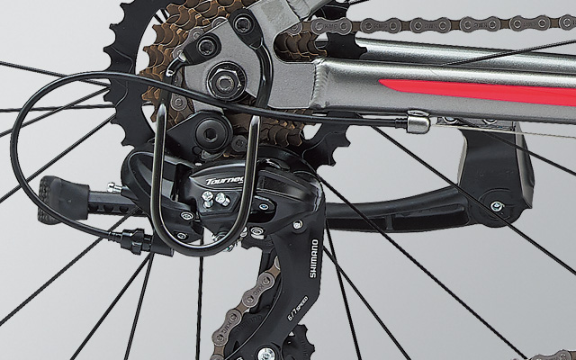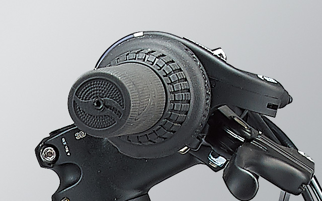 手指の小さいジュニアでも問題無く、直感的にギアシフトができるシマノ製グリップ式シフター。