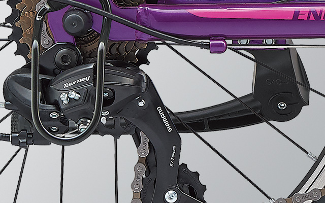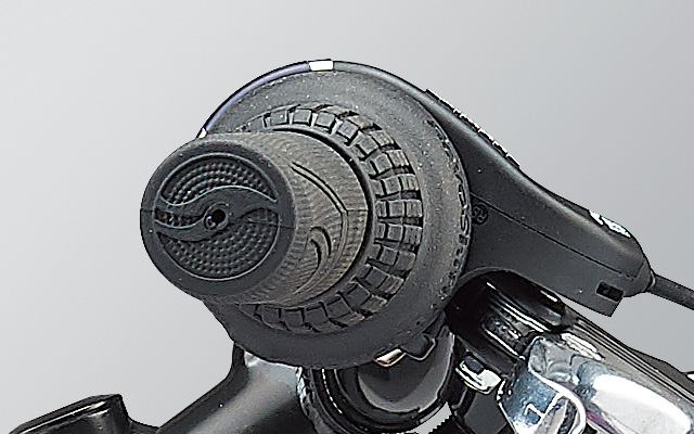 手指の小さいジュニアでも問題無く、直感的にギアシフトができるシマノ製グリップ式シフター。
