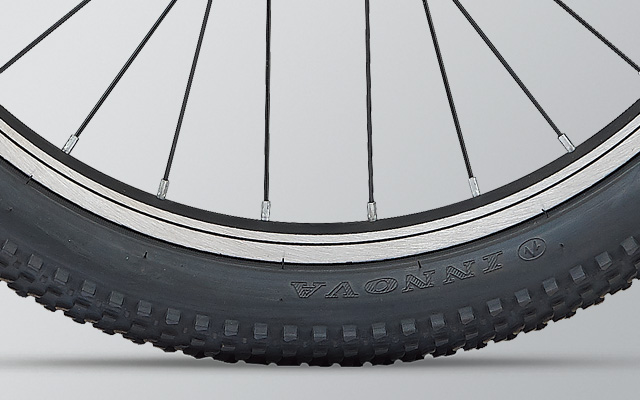 軽い走りとグリップを両立するオリジナルデザインのセミブロックタイヤを採用。