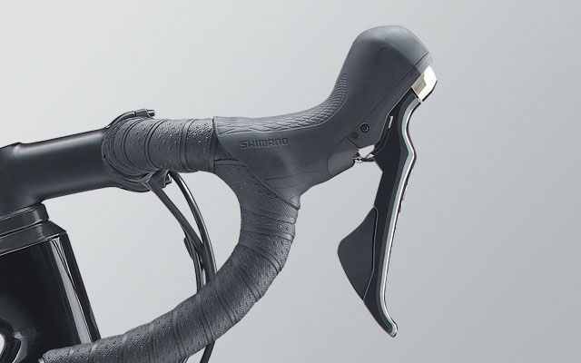 小さな手のライダー向けに開発された油圧ディスク用STIレバー「ST-R8025」を採用。