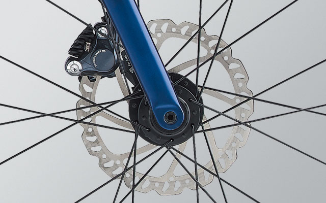 レバーの引きが軽く安定性に優れるシマノ製油圧ディスクブレーキを標準採用。