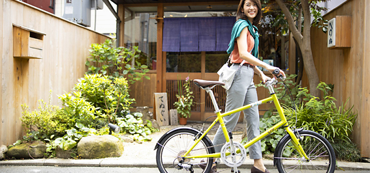20インチミニベロ「アミーカ」は、スタイリッシュながら走りもしっかりスポーティ。小柄な女性も快適ライドが可能。