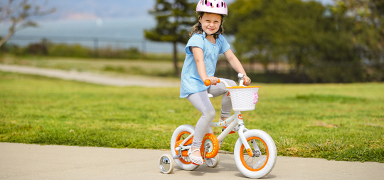補助輪付きの16インチファーストバイク「アドアー」が新設計でさらに快適に。女の子の自転車デビューをサポート。
