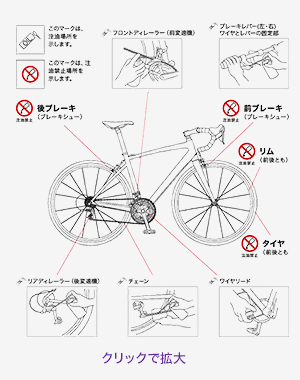 車体の汚れを落とし、変速機等の必要箇所にオイルとグリスを適切に塗布します。