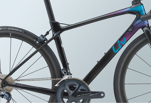 美しいフォルムのカーボンフレームは、軽さとしなやかさ、そして風を受け流すエアロ性能まで意図して設計されています。
