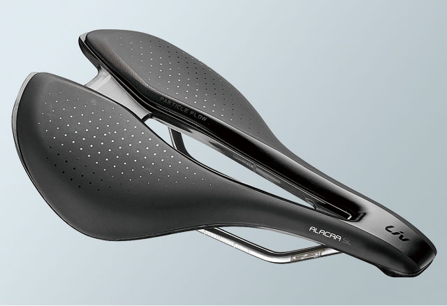 ペダリングを安定させて痛みも生じにくい、幅広ショートノーズ設計の新型女性用サドル。ユニクリップシステム対応。