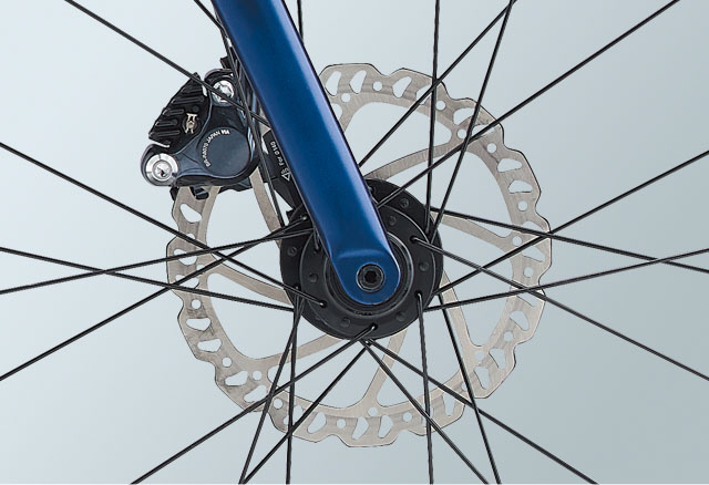 レバーの引きが軽く安定性に優れるシマノ製油圧ディスクブレーキを標準採用。