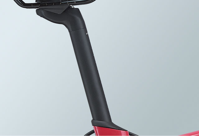 路面からの衝撃を逃がし快適なペダリングをサポートするD型断面形状アルミシートポスト。